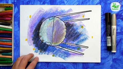 Первый спутник земли - рисуем для детей