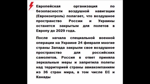 Воздушное пространство РФ будет закрыто для рейсов в Европу до 2029 года