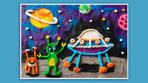 Космос из пластилина. Поделка в садик на 12 апреля. Рисуем луну, пришельцев. Космос для школьников.