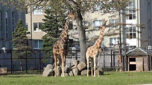 На прогулку вышло самое длинношеее семейство Калининградского зоопарка