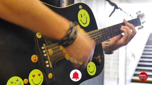 Человек аркестр поет в переходе! Гитара, барабан, бубенцы.