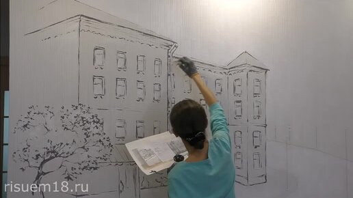МК роспись стен на обоях городской пейзаж | Художник Наталья Боброва