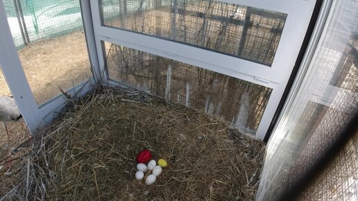 Аист и искусственные яйца