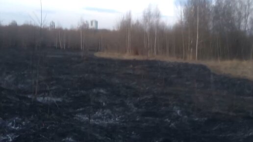За Гребным каналом около Щучьего озера произошло возгорание травы на большой площади 🚒