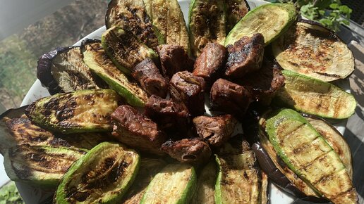 Пора шашлыков и овощей на гриле начинается. Готовьте с любовью, рецепт мяса с баклажанами и кабачками. (Шашлык маринуется ночь)