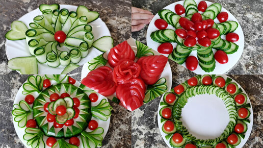5 СУПЕР СПОСОБОВ Украшения Овощами на Праздничный стол. Как красиво нарезать Овощи. Украшение салата