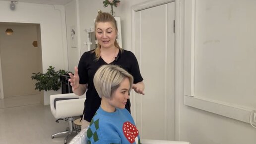 Сложное окрашивание блонд с затемнением корней и коррекция стрижки ПИКСИ для милой гостьи Family Beauty Club