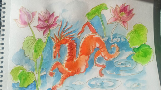 Рисуем дракона , гуляющего по воде)).Графика,акварель. Мастер-класс для взрослых.