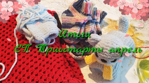 СП Триостарты апрель. Итоги. Всё работы готовы. Жакет крючком, котик спицами, носки крючком