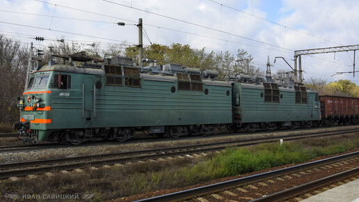Электровоз ВЛ80с-733 на закате выходит из Батайска на Юг