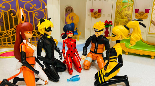Леди Баг, Супер Кот , Вольпина , Саске и Наруто играют в бутылочку на поцелуй!