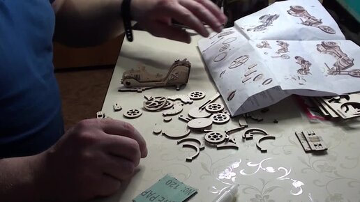 Склеил мотоцикл из деревянных деталей