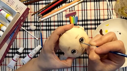 Далее: Кукла с голубыми глазами. Как нарисовать глаза кукле. How to draw a textile doll's eyes.