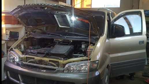 Хундай Старекс, замена масла, замена трубок на радиатор, сделал новый тройник.