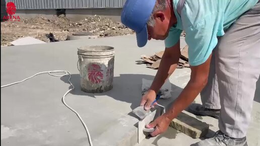 Ремонт кромки бетонной плиты материалом ARENA RepairMaster R500 (65 МПа) тиксотропный.