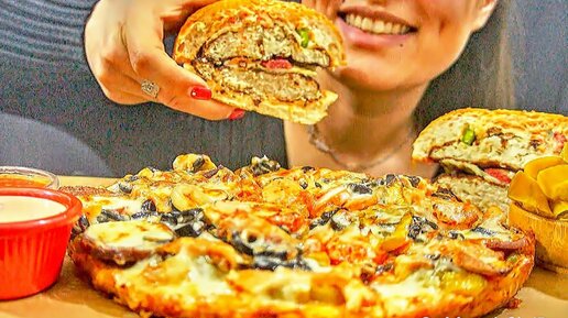 PIZZA🍕 CHICKEN BURGER 🍔 _ASMR MUKBANG_ #pizza #burgerking #mukbang NO TALKING_