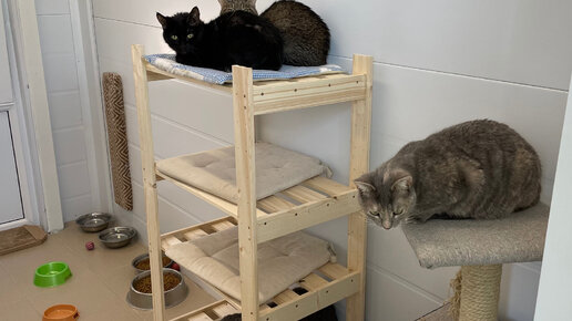 И вновь про обустройство вольеров у кошек: места и полок хватает всем😊