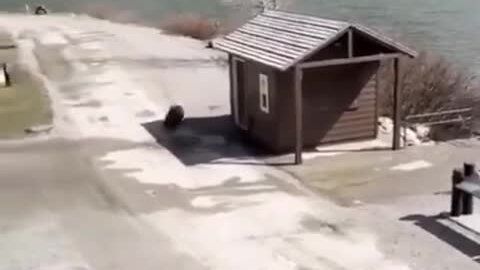 Лось гоняет медведя!
