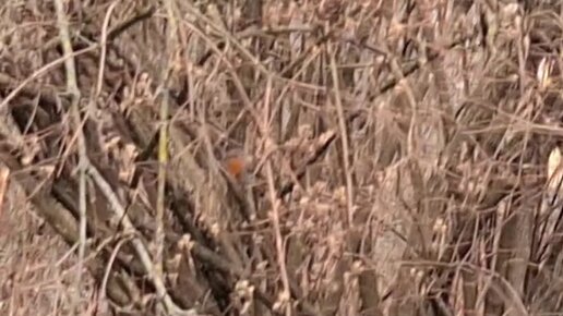 Пока занимались весенней уборкой участка, прилетела маленькая птичка с яркой оранжевой манишкой. Её по-разному называют. Видели такую?