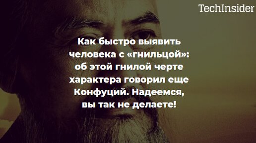 КАК БЫСТРО ВЫЯВИТЬ ЧЕЛОВЕКА С «ГНИЛЬЦОЙ»: об этой гнилой черте характера говорил еще Конфуций. Надеемся, вы так не делаете!