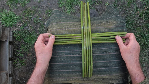 Далее: 11. Дно простой круглой корзины неплохо плести верёвочкой в 2 прута. Сериал: "Плетение простой корзины"