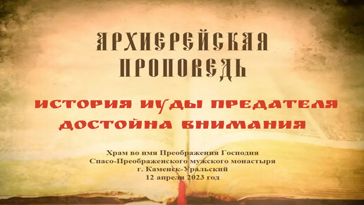 Проповедь Преосвященного Мефодия «История Иуды предателя достойна внимания»