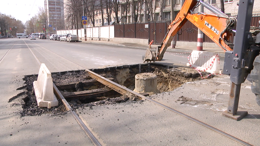 Глубокая проблема. Провал грунта парализовал трамвайное движение