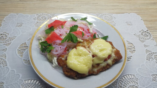 Отбивные из свинины в панировочных сухарях с сыром.