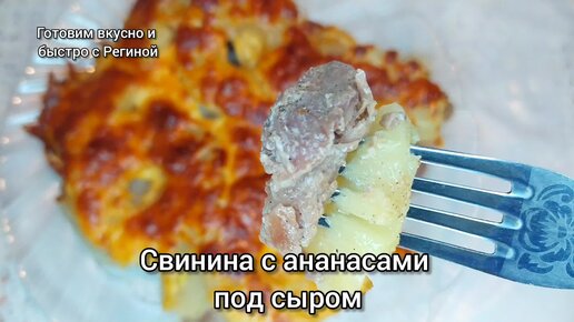 Мясо с ананасами и сыром.