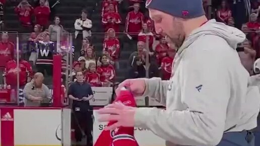 Овечкин подарил свой свитер маленькому хоккейному болельщику.