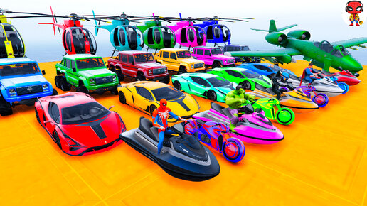 Человек-Паук в ГТА 5! Супер автомобили, мотоциклы, вертолеты, лодки! Эпическая трюковая карта для супергероев №10
