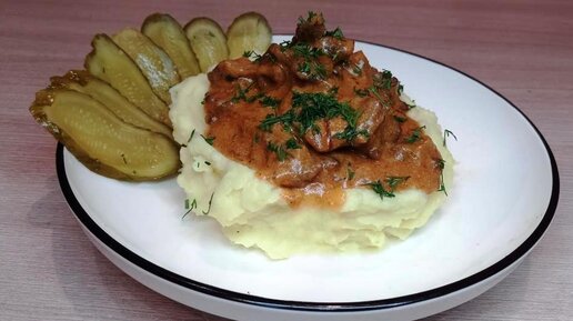 Бефстроганов с картофельным пюре / Beef Stroganoff with mashed potatoes