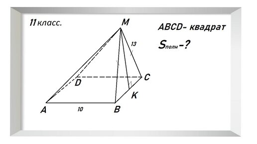 Найти площадь поверхности , если грань ВМС перпендикулярна основанию.