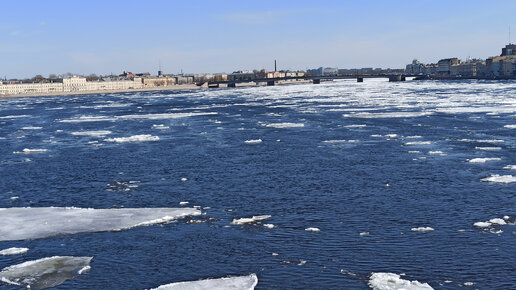 По Неве идет ладожский лед. Петровская набережная, Троицкий мост и восточный ветер