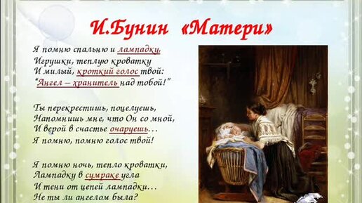 Матери ("Я помню спальню и лампадку..."), Бунин
