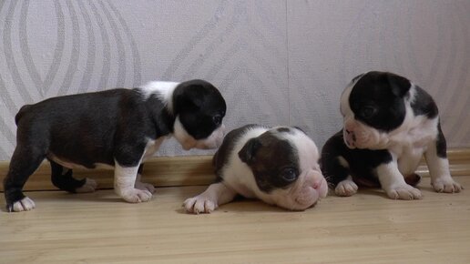 Как щенки бостон терьера делают первые шаги без мамы