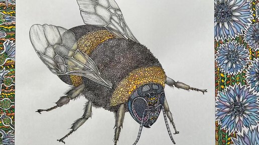 Новая графическая картина, созданная нашим художником Ириной Терновской в ее авторской технике. Несколько месяцев работы. Название картины "День шмеля", бумага, акварель. #картина #искусство #арт