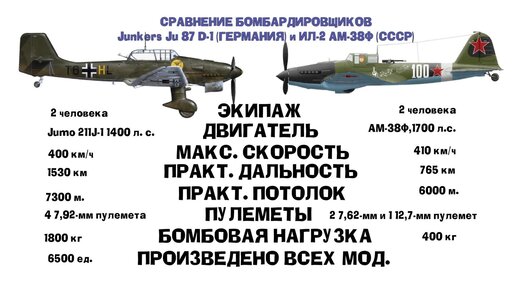 Сравнительные характеристики Junkers Ju 87 D-1 (ГЕРМАНИЯ) и ИЛ-2 АМ-38Ф (СССР)