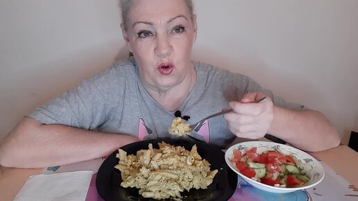 #мукбанг/макароны /салат из свежих овощей