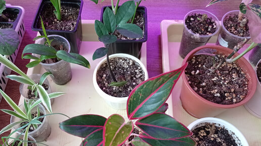 Комнатные цветы. Обзор комнатных цветов на верхней полке стеллажа.