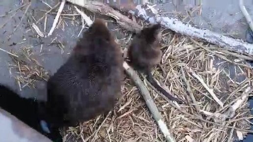 Бобр и ондатра жили пять дней бок о бок на льдине на территории судостроительного предприятия "Северная верфь"