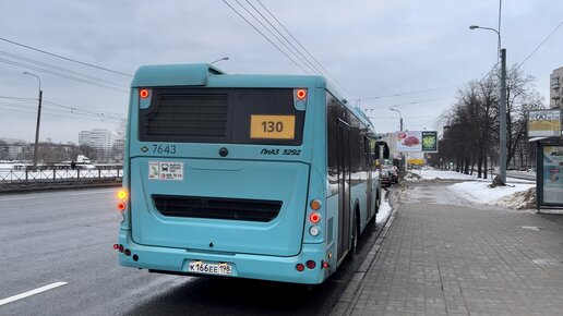 "Лазурь!" Автобус ЛиАЗ-5292.67 (CNG) №7643 по маршруту №130 прибывает и отправляется с остановок в Санкт-Петербурге