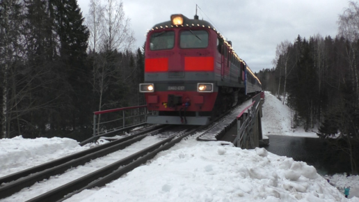 "Поезд Деда Мороза на старом финском мосту через реку Янисйоки!" Тепловоз ДМ62 - 1787 с "Поездом Деда Мороза" на пл.Яниссилта