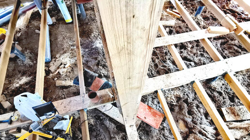 УСИЛЕНИЕ СВАЙНОГО ФУНДАМЕНТА ВНУТРИ ДОМА 🏠 ДОПОЛНИТЕЛЬНЫЕ СВАИ ПОД ПОЛОВЫЕ ЛАГИ И ПЕРЕГОРОДКУ 👷♂️🏠👍