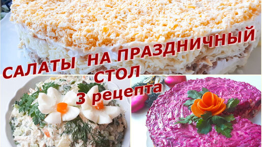 Новогодний стол 2024. Классические салаты - 3 рецепта. Салаты на Праздничный стол. Оливье, Мимоза, Селедка под шубой. Пасхальные рецепты.