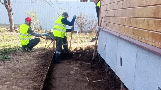 Устройство отмостки вокруг дома, монтаж дренажа и ливневой канализации. Поднятие участка.