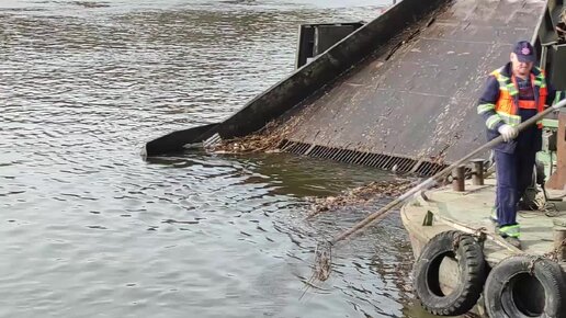Чистка Москвы-реки огромным ковшом теплохода МС-3