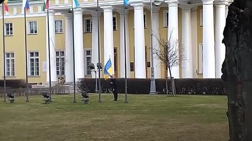 В Санкт-Петербурге молодой человек снял флаг Украины, который подняли у Таврического дворца.