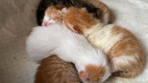 Сутки после рождения котят! Мама кошка справляется!