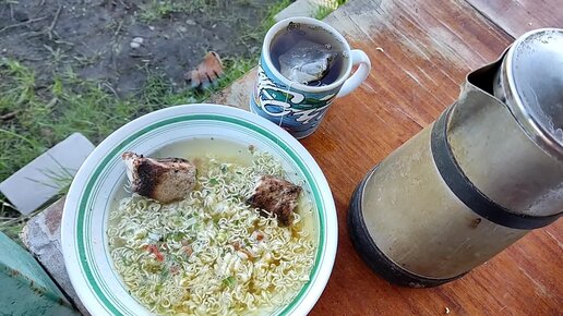 ОБЖОР Доширак с мясом и сардельки/Утро на даче/Чаëвничаем